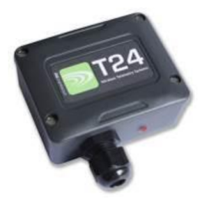 T24 Wireless Transmitter modules connect directly to a Strainsert sensor. They provide strain excitation, signal measurement, ADC conversion, and transmission of reading data to a T24 Wireless Receiver.